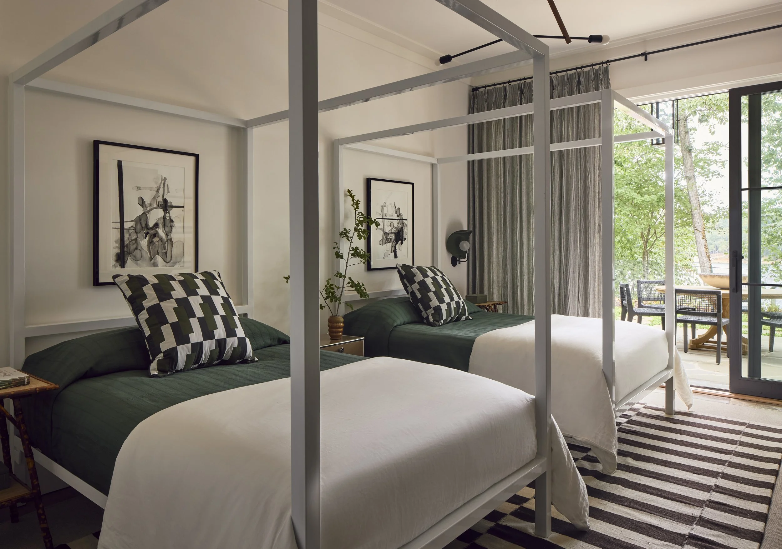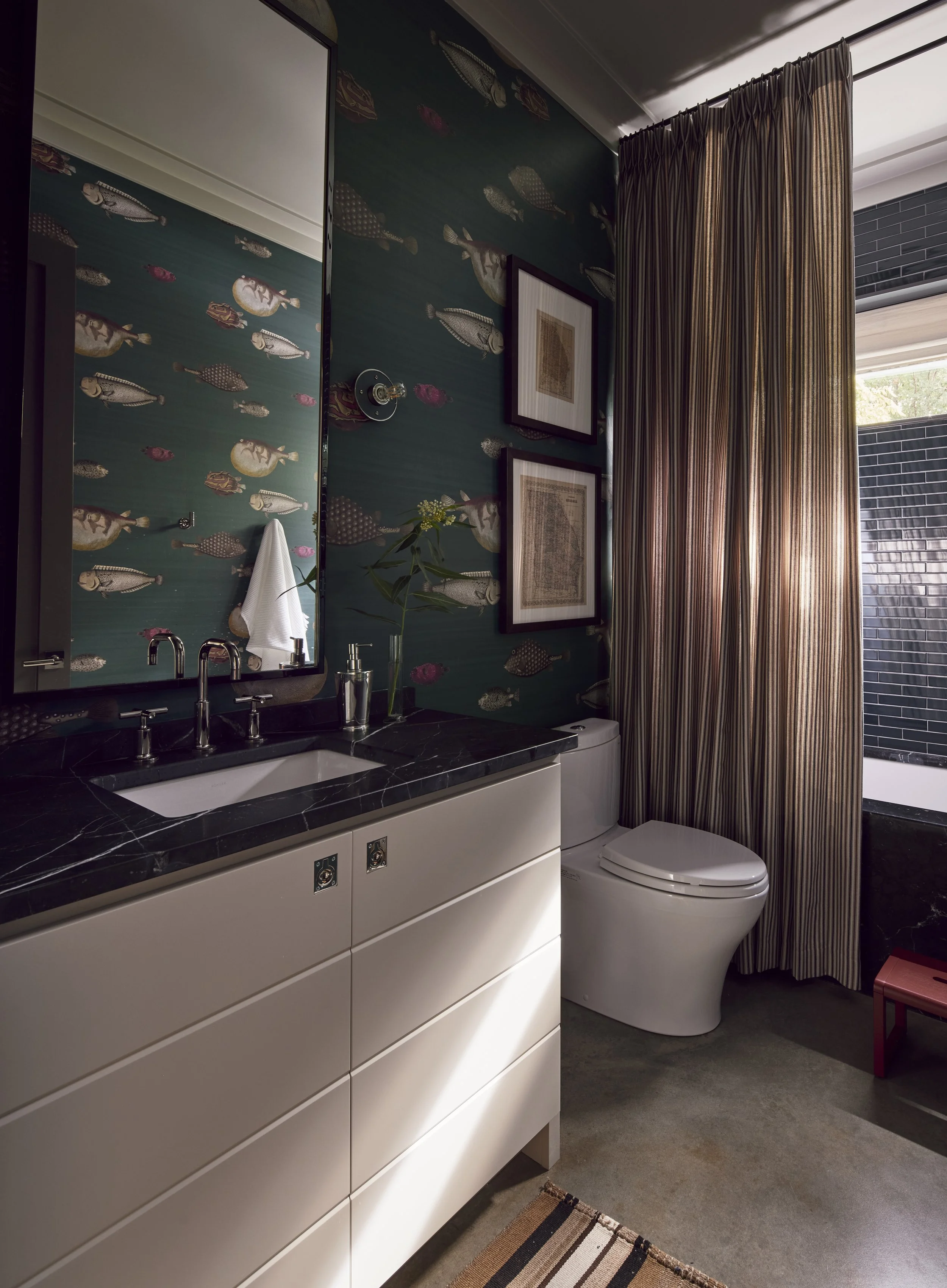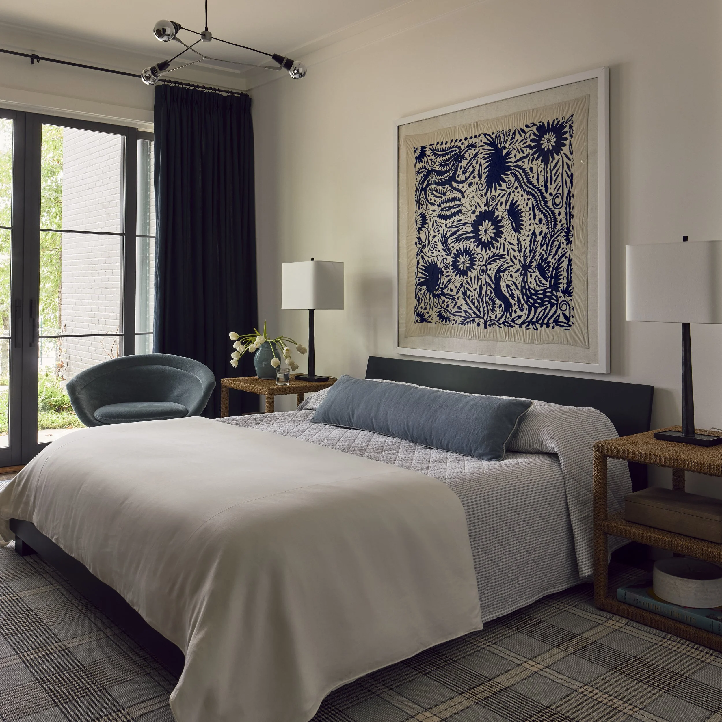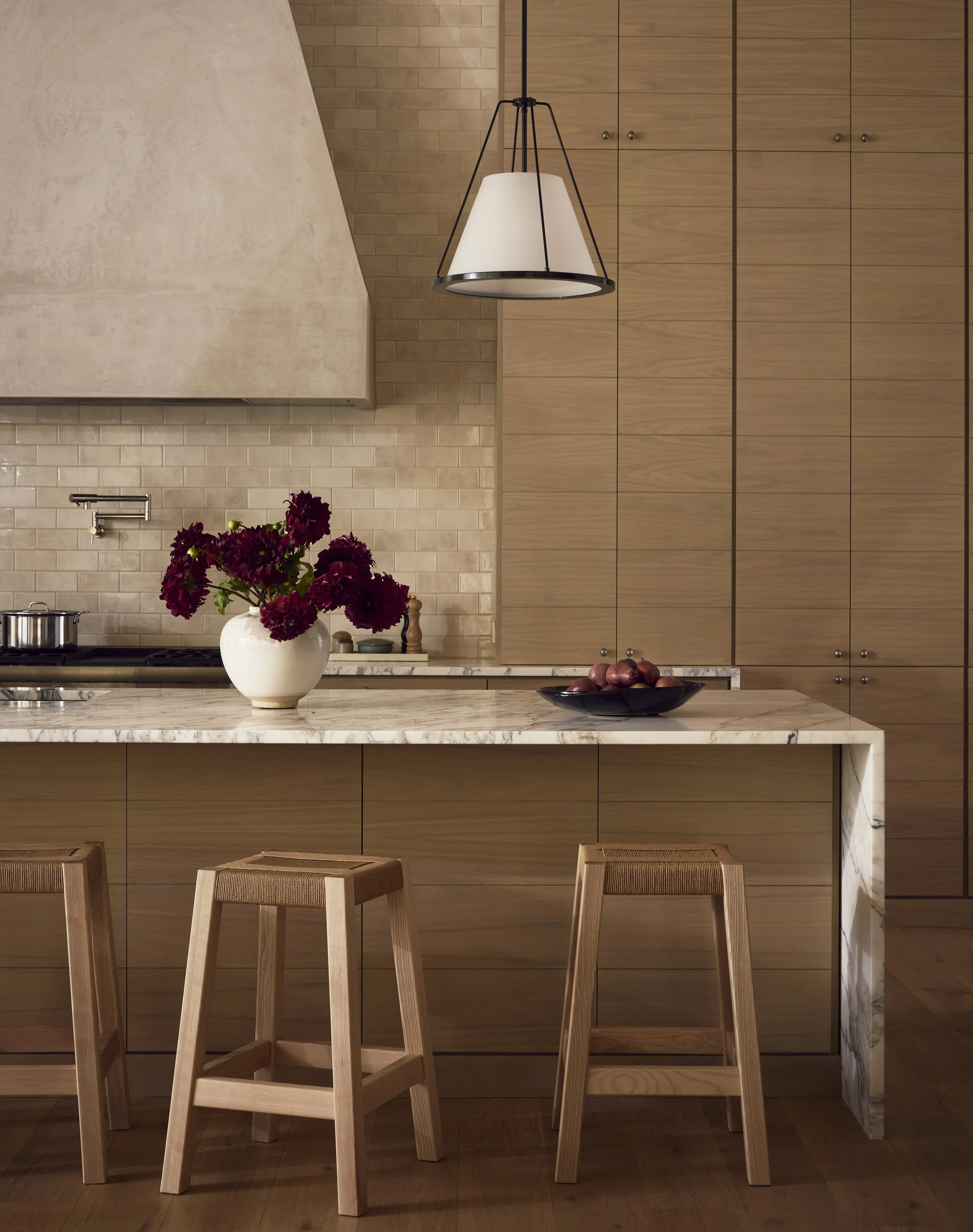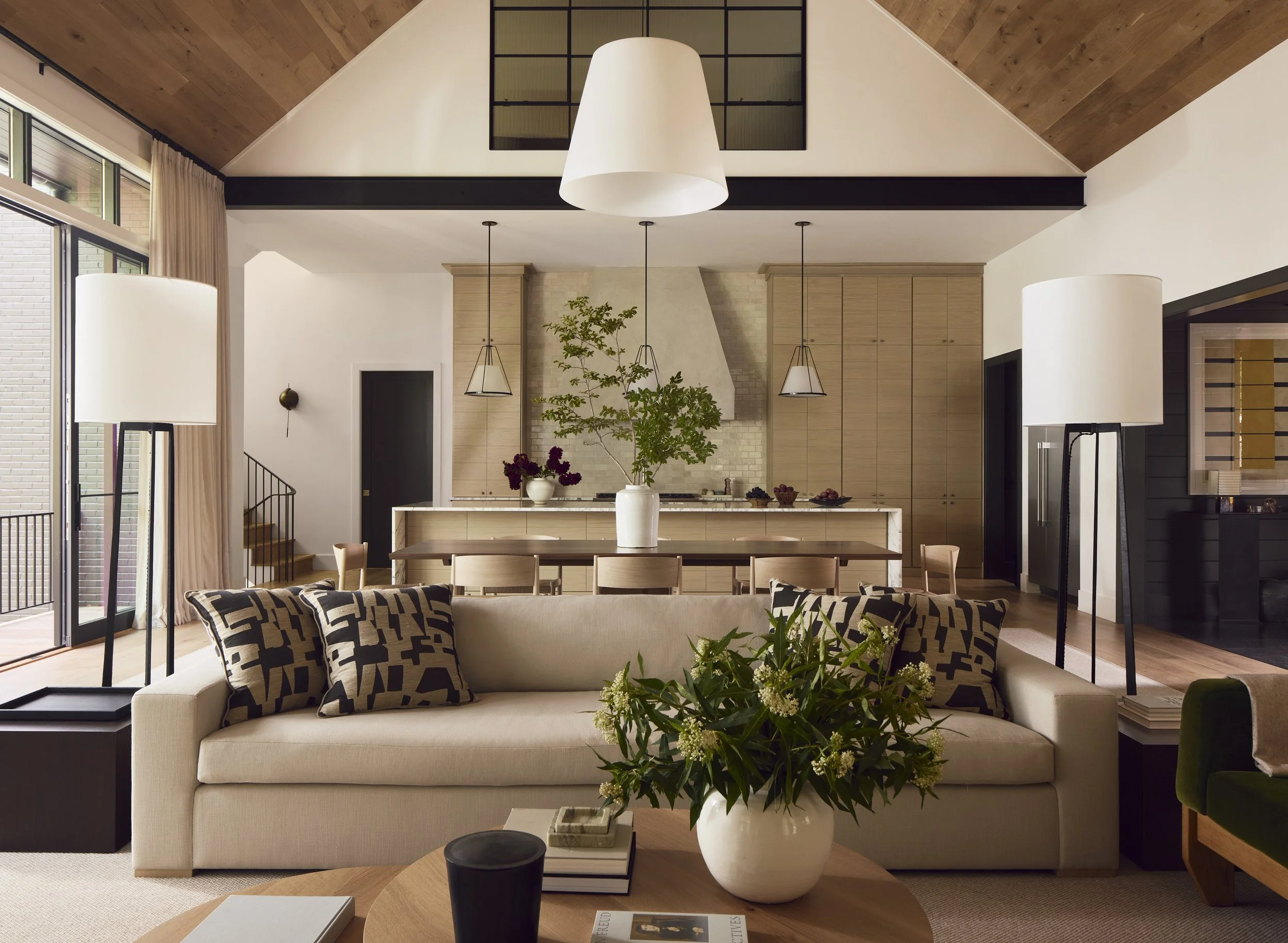 Located on a wooded lakefront lot in Hartwell, Georgia, this newly constructed home offers a modern take on the classic lake cabin. A rich interior palette, featuring European oak, native tumbled stone, blackened steel, and boldly veined marble sets a warm, textural backdrop for contemporary, tailored furnishings and lighting. Published in Luxe Southeast.