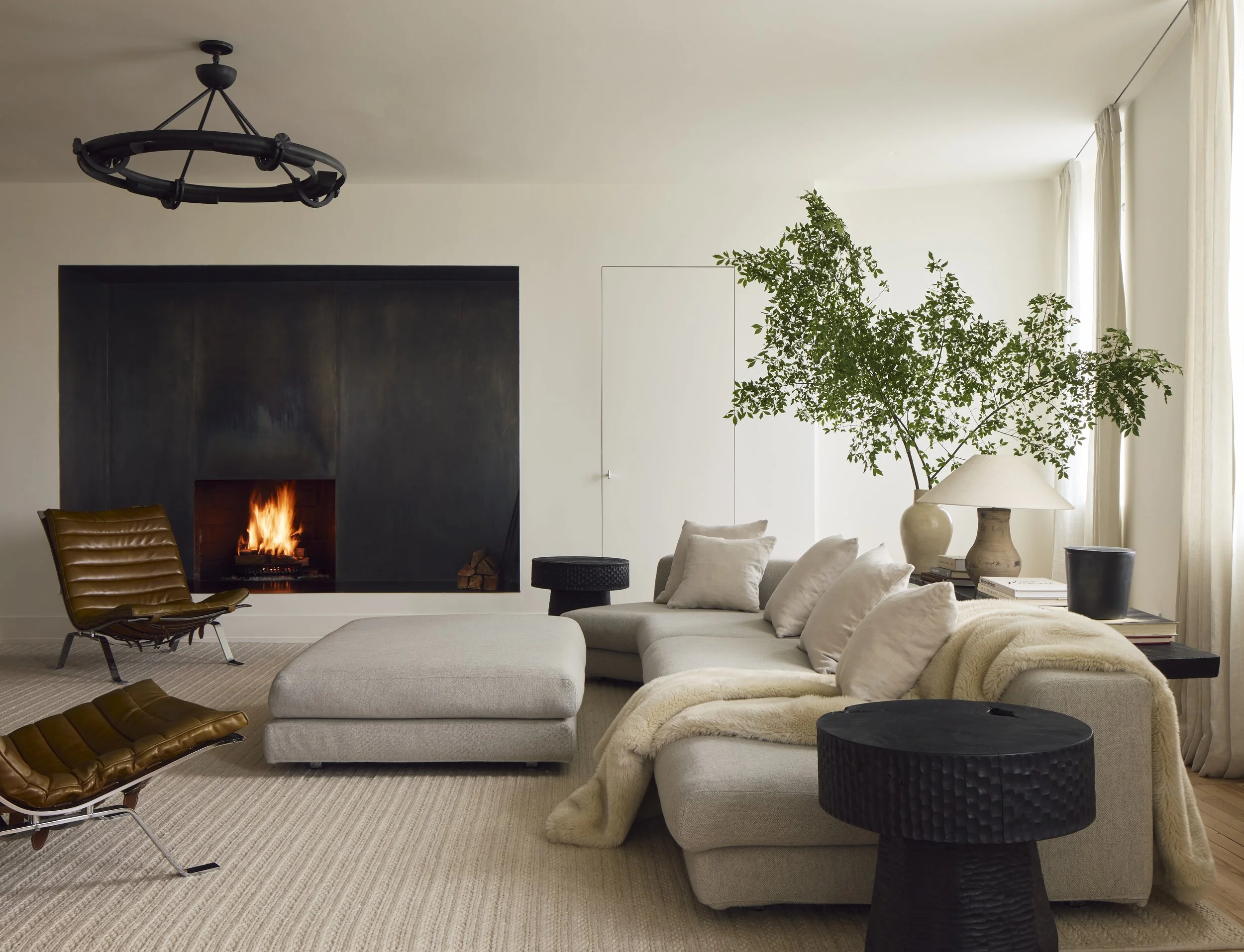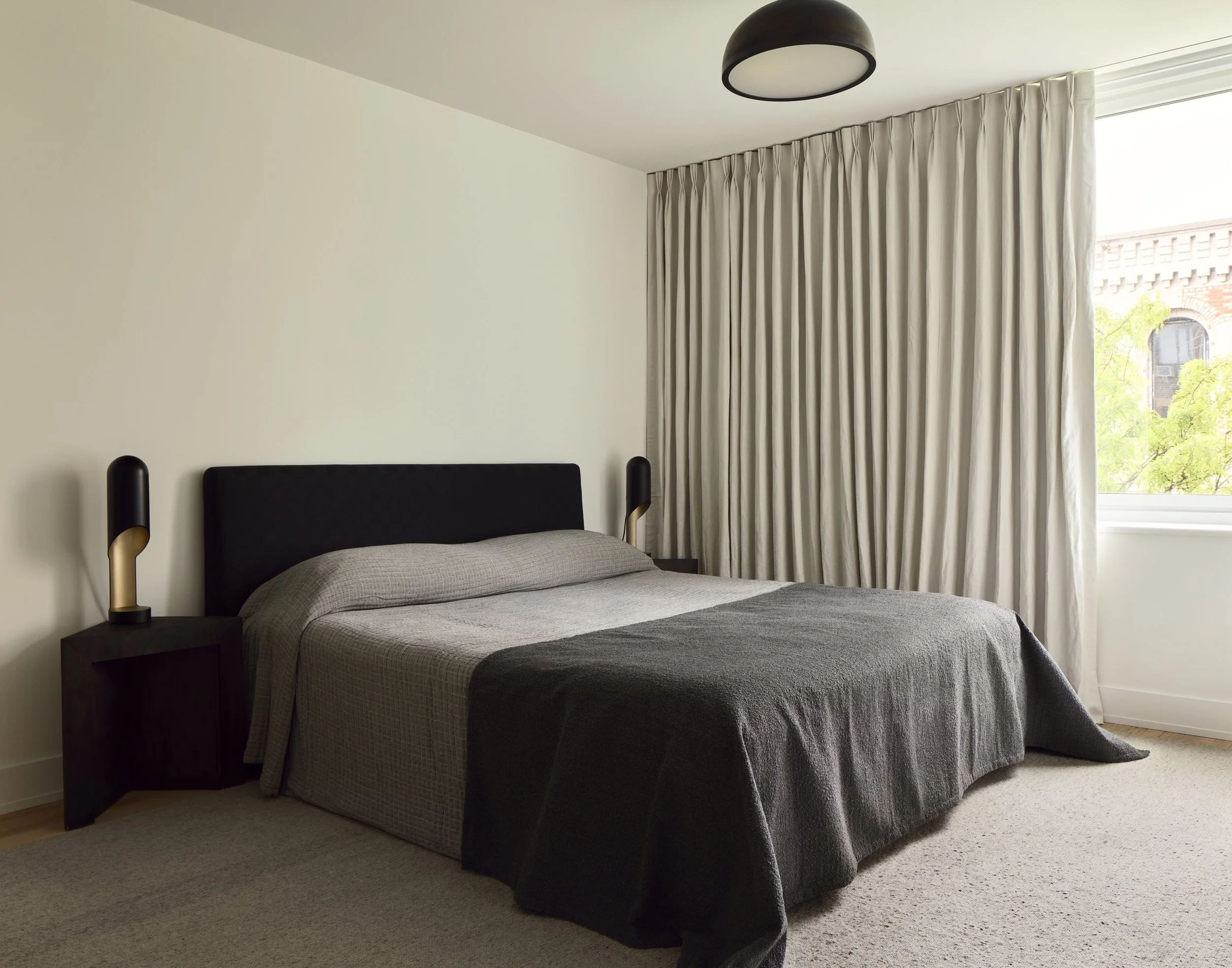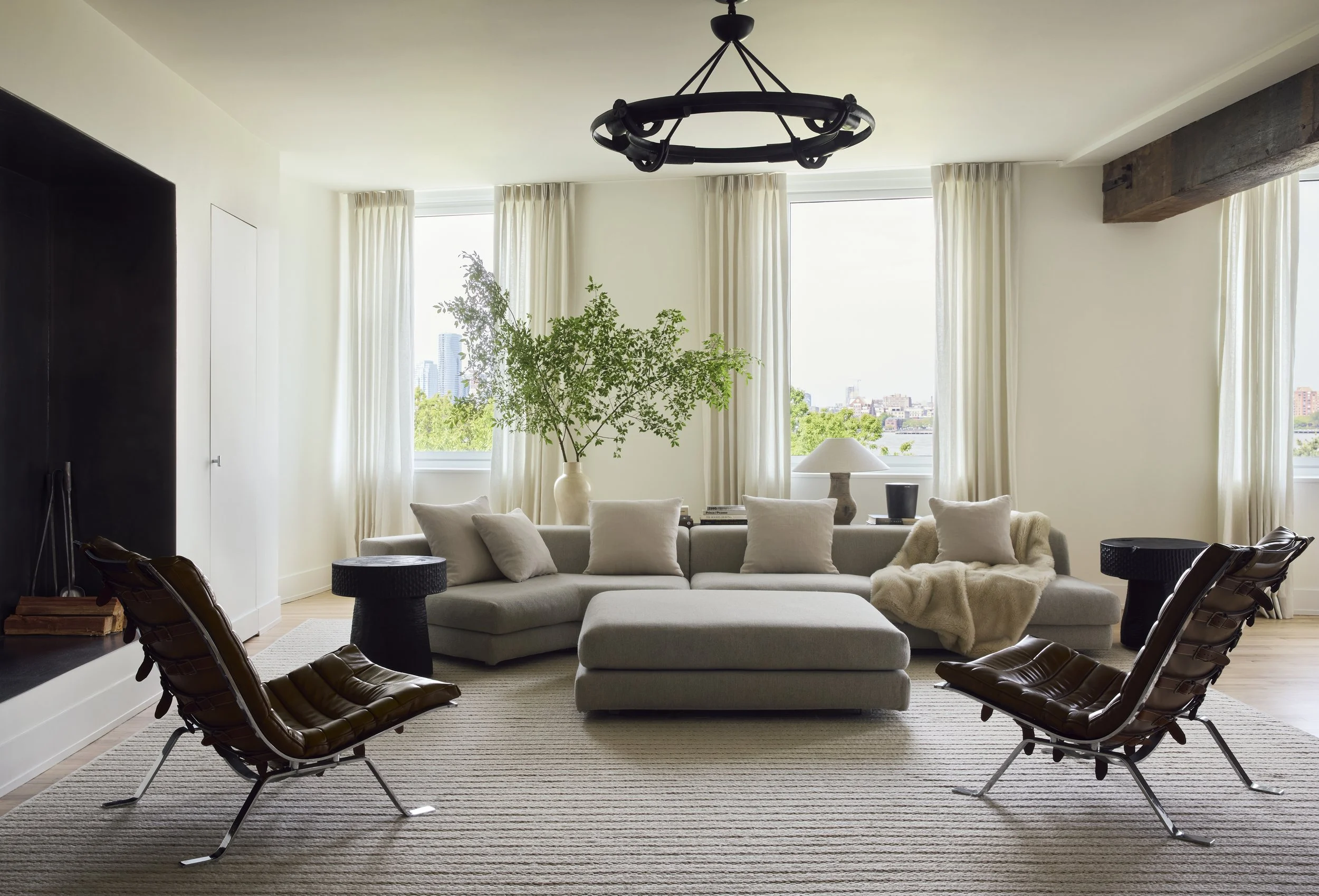 This 2,400-square-foot former industrial loft was transformed into a contemporary European refuge. Refined finishes, handwoven Belgian linens, and iconic vintage furnishings interplay with exposed timber beams and a blackened-steel fireplace, honoring the building’s early 20th-century character while establishing a tranquil, modern sanctuary. The result is a calm, uncluttered pied-à-terre designed for creative clarity and modern living. Featured by Architectural Digest.